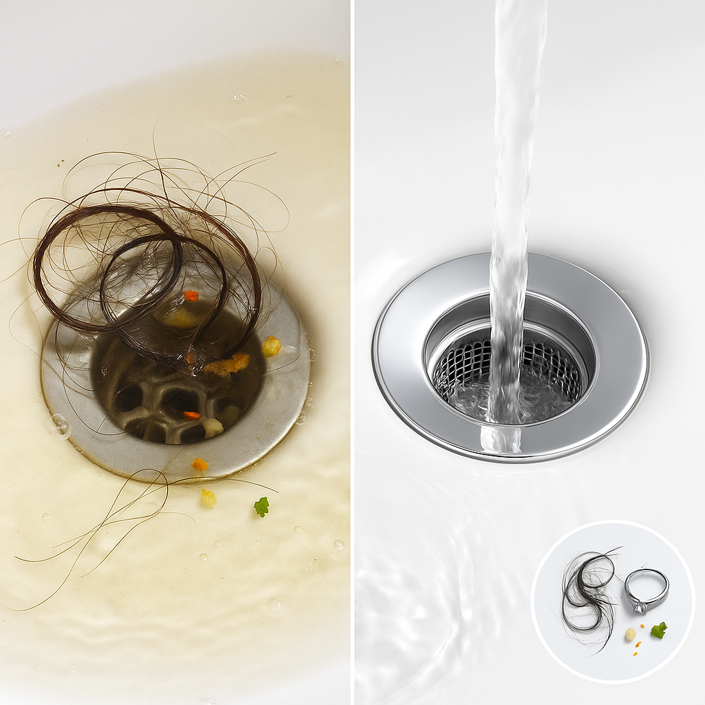Catch hair, jewelry & small items before they clog your sink. Clean in 1 second.