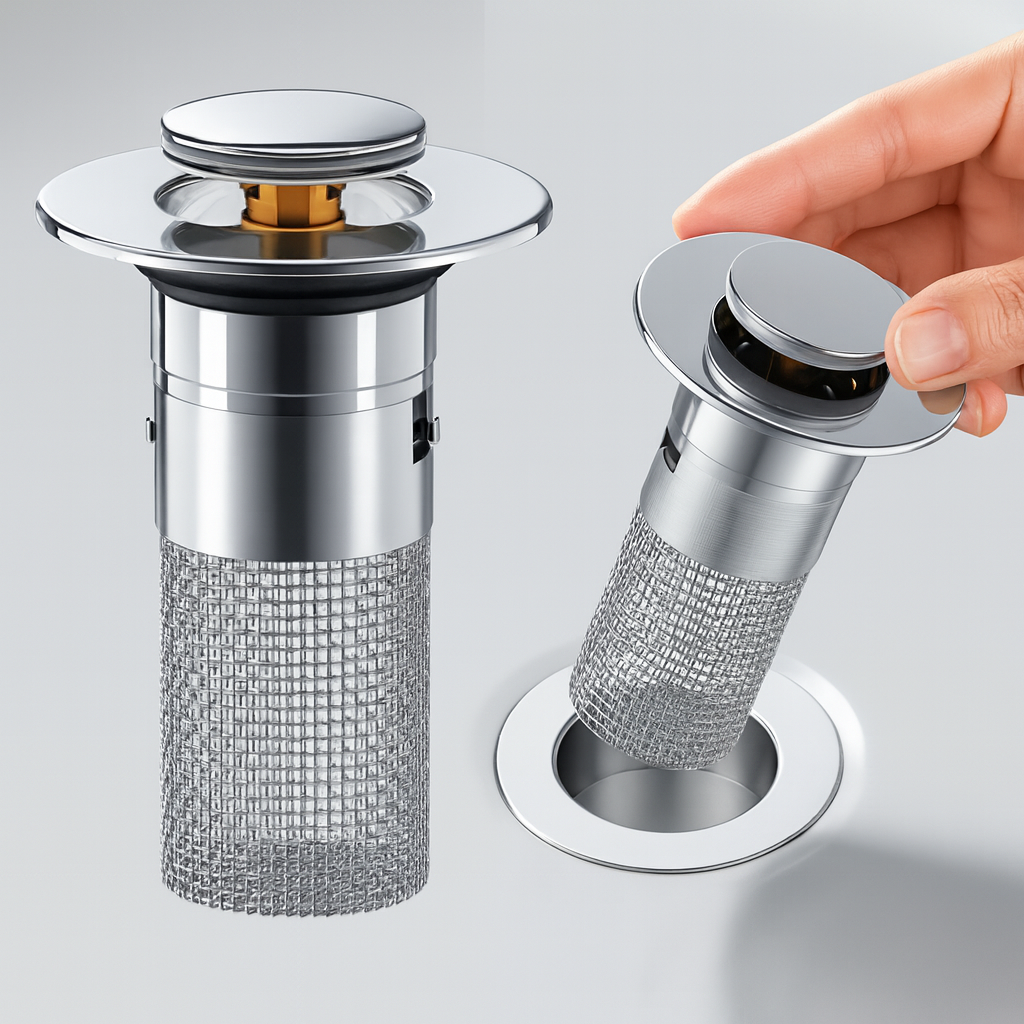 Catch hair, jewelry & small items before they clog your sink. Clean in 1 second.